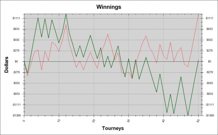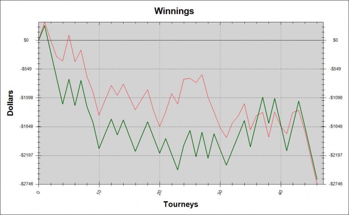 Потихоньку вытягиваю показатели на нужный уровень. Опять же на 7% хоть и надеюсь, но сам прекрасно понимаю, что против регов это будет просто шикарный результат. Ну а теперь отдыхать! Честно, заствлял себя встать сегодня с кровати полчаса только потому, что очень не хотелось садиться за катушку... Плохо идёт. Если бы не кулера, и EV шло вверх, мотивации было бы гораздо больше, а так... Теперь до понедельника надо восстановиться и морально, и физически. В субботу снимают швы, с воскресения опять начну ходить в спортзал, напропускал кучу занятий из-за этой операции. Скоро всё будет хорошо, я верю!