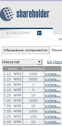 Я продолжаю помогать Тестеру, и только что прикупил ещё 2 акции его бюджетного автомата по 3,50 р. за штуку. Дешёвых акций по рублю уже не осталось. Спекулянты и барыги взвинтили цены и цены на его акции снова пошли вгору. Теперь у меня всего 11 его акций. ----------------------------- Вот скриншот цен на его акции, по каким ценам их можно сейчас приобрести: