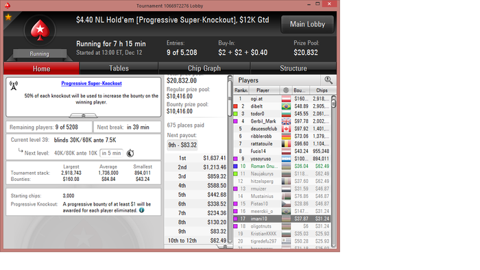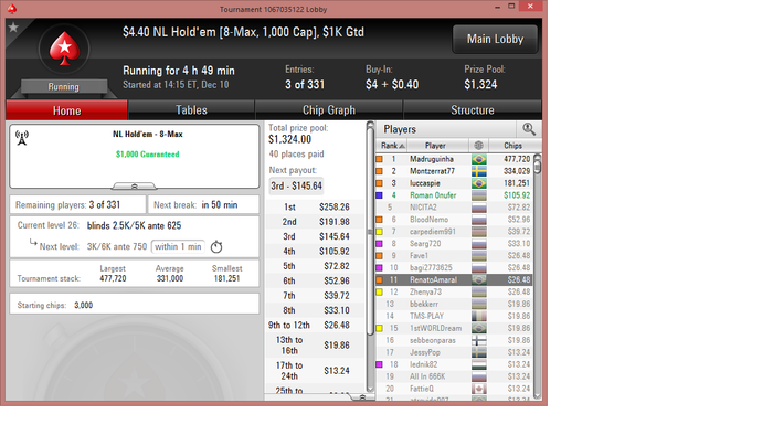 Poker Stars $1.00+$0.10 No Limit Hold'em Tournament - t15/t30 Blinds - 8 players -