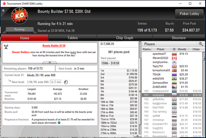 я вчера в топ27 бига за 22 тоже так думал и надеялся, но старзы решили что мне и 200$ хватит положив опу 2%, а седня посмотрел, этот клоун до 5 места доехал и 3к отхапал
