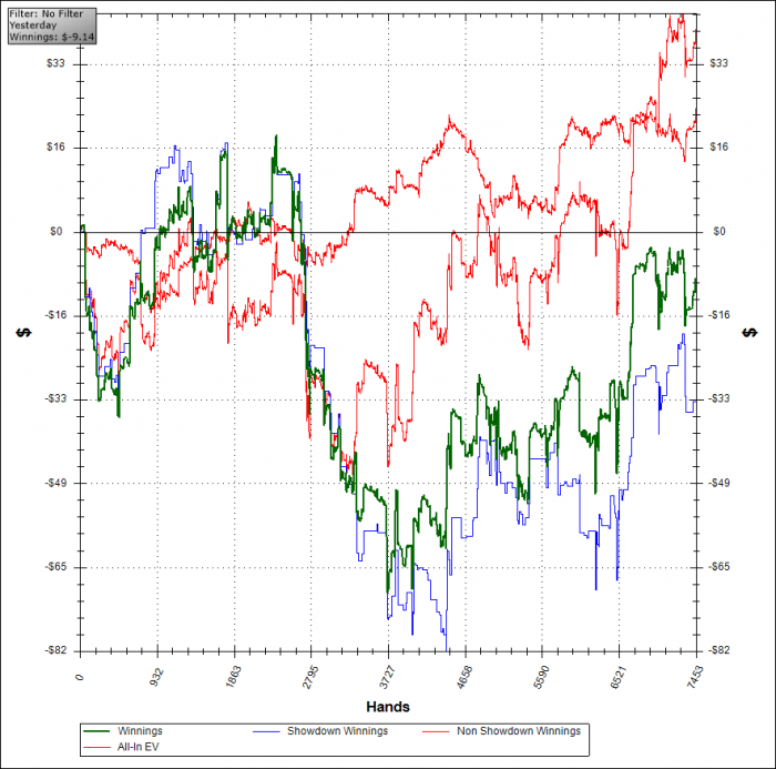 Нет, вопервых я половину времени играл на 10-ках все ж. Падение связываю с плохой игрой своей ) Не хватает концентрации. Причин много: оффлайн, пражки с обычных столов на зум, бурные праздники, ДР, кешаут. Вообщем очень многое не дает нормально сконцентрироваться на игре. Это видно даже по количеству наигранных часов.