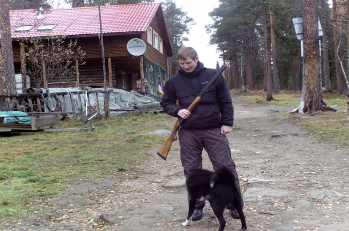Место охоты находится в 200км от мурманска, причем последние 90 километров идет в хлам убитая грунтовка. Охота напоминает саффари. Едешь в полутьме (за пол часа до, и после рассвета), дичь (куропатки, тетеревы и глухари) выходит на дорогу, или летает рядом с ней, выходишь стреляешь, едешь дальше. Очень долго не мог приноравиться стрелять, но последние 4выстрела были в яблочко, итого 4ре куропатки (2одним выстрелом) и глухарка, чтож для начала неплохо, с учетом того, что ехал больше за эмоциями, а не с целью "набить мяса". Места конечно там шикарные, очень красивая природа. В следующий раз, хочется поехать туда уже недели на 2, с рыбалкой (у брата огромный выбор удочек, спиннингов, сетей, есть 2моторные лодки), сбором грибов и охотой. Ну и пара фоток: Турбаза, в которой мы останавливались: Ну и главный наш трофей, гдухарь на 4,3кг, брат только с 3его потрона добил его.