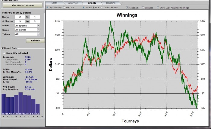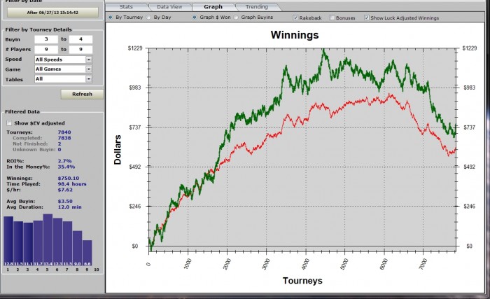 Таки вирішив написати ... пост буде довгим (мабуть) і не тільки про покер. Пишу його більше для себе, щоб поглянути на те, що сталося зі сторони. Власне цей місяць почався для мене ще 27 червня, оскільки саме в той день я отримав диплом про завершення вищої освіти і мені присвоїли ступінь бакалавра. Після цього я по суті був вільний і єдине, що мені залишалося-катати. Ну і звісно магістратура, я таки вирішив продовжити навчання, тому мене чекали екзамени…знову. Але про них можна було не думати до середини місяця. Спочатку я на 10 днів опиняюся в порожній квартирі мого дядька, який поїхав з дружиною на море. Оскільки тягати за собою здоровенну панель на 24 дюйми було непрактично, я був змушений грати на 15 екрані ноутбука, який до всього не відрізняється якісною кольоропередачею. Але хрін з ним, добре що й такий є. Загалом катав я каскадом 24+ столи. Як виявилося це дуже зручно, я не бачу, як мене переїжають, повністю зосереджений на активному вікні і по суті єдиною проблемою тоді була необхідність контролювати кількість столів, бо на той момент в мене не було програми для авто реєстрації. Результати за період від 27.06 до 9.07: