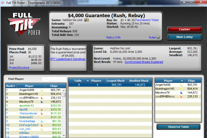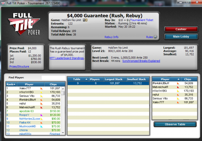 Blinds: 250/500 Ante 60