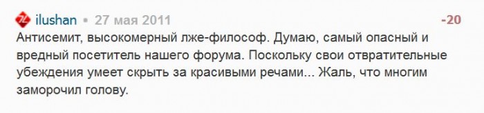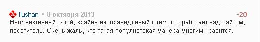 злой, крайне несправедливый к тем, кто работает над сайтом, посетитель - тут какая-та личная трабла, обида Илюшана свербит, аж за версту чувствуется.