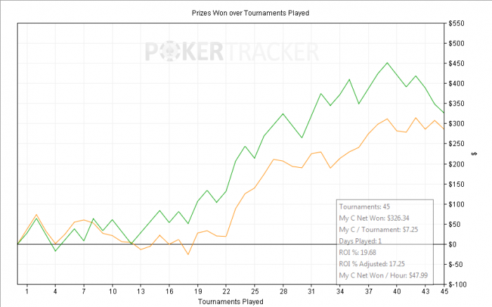 PokerStars - $28.78+$1.22|15/30 NL (2 max) - Holdem - 2 playersHand converted by PokerTracker 4BB: 46.47 BB (VPIP: 67.44, PFR: 55.56, 3Bet Preflop: 38.10, Hands: 284)