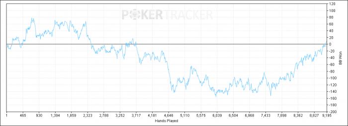 Красиво меня выбили. Был нотс, что там бывают 3-беты в мультипот с ККхх, поэтому выкинул без сожалений. Но в целом странную он руку показал при общем 3-бете 10%.