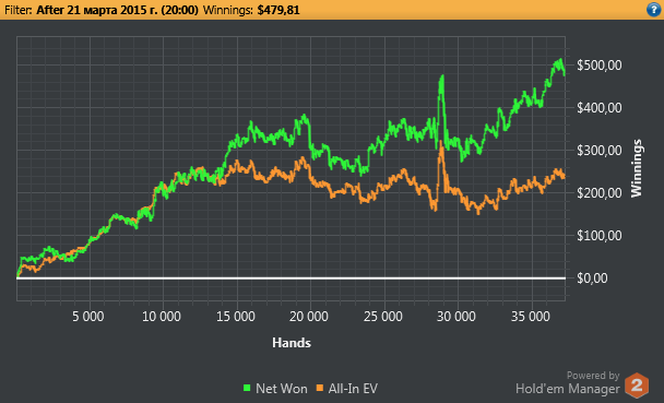 С начала месяца до на начала этой недели практически не играл. Не было желания. Хотелось лишь гулять, бухать, трахаться и играть в дотан. Но вот только из 4 перечисленных дел, кроме одного (для каждого свое ) толку не особо много, а деньги для этих дел зарабатывать нужно (ну опять же кроме 1 ). В начале недели реально загорелся целью заработать на машину и съехать от родителей, снимая хату. Если в ситуации с авто придется подождать учитывая какие лимиты я играю, то поддерживать заработок на таком уровне, чтобы жить самому - вполне реально. В общем за эту неделю, а именно 6 дней я каждый день играл пл5-10 на 20 столах по 3-4 часа в день. Первые дни было тяжко: во-первых тупо сложно было сидеть и пялиться в монитор, в полной тишине (последнее время играю без музыки, так как сильно отвлекает); во-вторых недобираю. Сейчас уже играется очень спокойно.