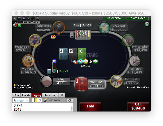 nailuj90 (UTG+1): 12,262 (VPIP: 20.86, PFR: 16.89, 3Bet Preflop: 4.84, Hands: 164)