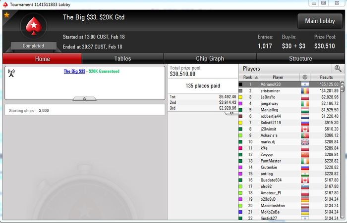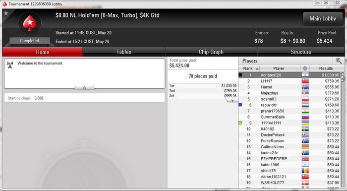 На этой серии было 3 дешевых турнира... 1) Турбо дипстек за 125 2) Варм Ап Нокаут за те же 125 3) Мейн за 250