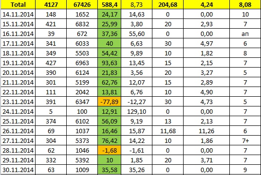 VladosTsk92, хорош постоянно крепкие, красивые графики, не знаю как вы так на ФР умудряетесь) я врываюсь к себе, за 400 рук -5би - все в куллерах или доездах, и сидишь пол дня отмазываешь, жесть какая-то :)