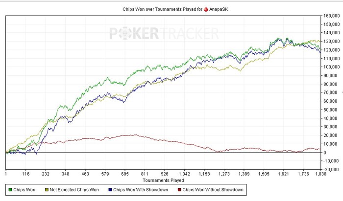 Спасибо моему учителю который заставлял меня писать ноци, что касается раздачи ниже на оппа (115 рук) рег троек играет 4 стола, показатель лимпа был 5% и вот такой ноц: Limp 25bb AA, AK, QQ. Единственная рука которая меня тут била это KK со всего остального (5% диапазона лимпа) мы собираем деньги.
