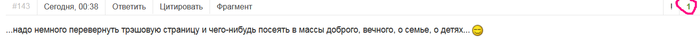 ...надо немного перевернуть трэшовую страницу и чего-нибудь посеять в массы доброго, вечного, о семье, о детях...