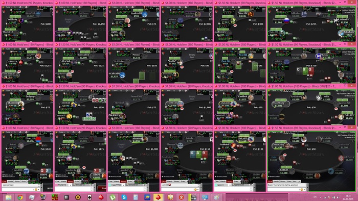Кое-как играл на 24 столах. Для меня это пока озорство с явным ухудшением игры. 16-18 столов всё-таки получше