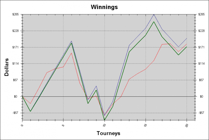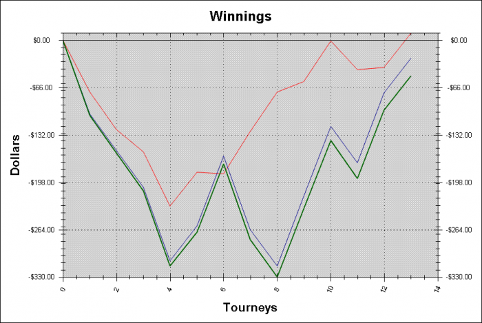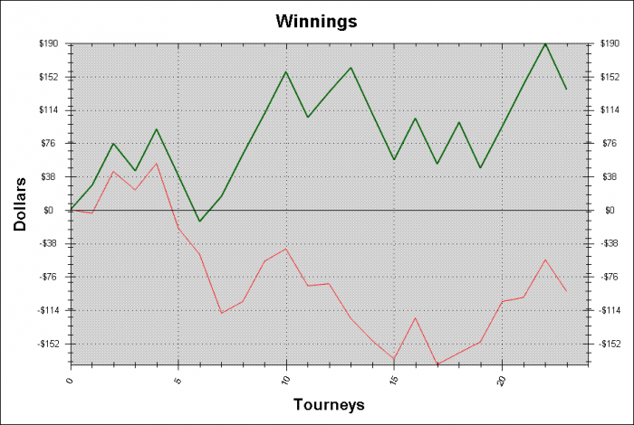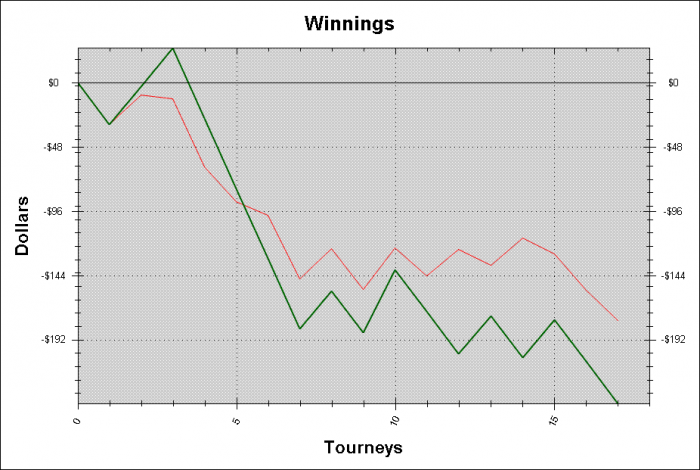 Первый день игры с нового ника не принес ничего особо интересного: 30 турниров,+380$. Большинство матчей провел "от обороны" и мучаясь с нитами) Вот типичный пример: