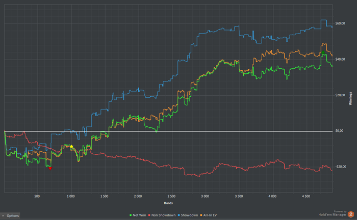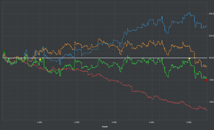 Разобрал с утра все проигранные вчера банки, овер 20бб и выяснил, что ошибок я наделал всего на 140бб из 800 залитых. Все остальное - кулера, монетки и переезды. Так что я не полное дно, как я думал вчера вечером