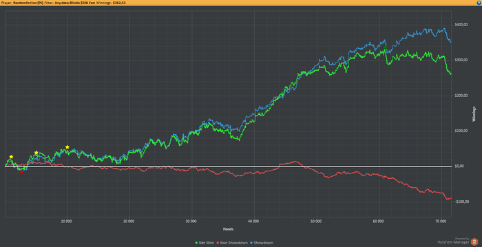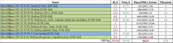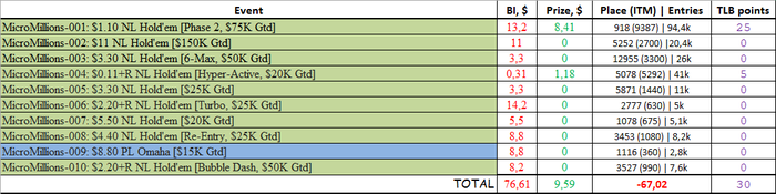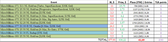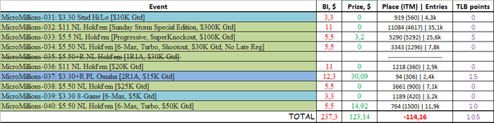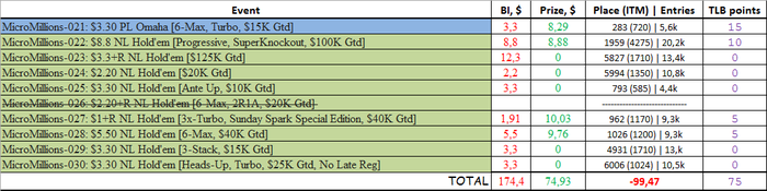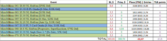 Посмотрев лидерборд, могу сказать, что очков у меня для топ10 мало, да и в форумной мазе нарисовался лидер с 300+. Так что, возможно, стоит изменить стратегию и начать играть лузовее, т.к. микро-итмами я вряд ли догоню. Что собественно и сделал в нокауте 4.4 и проиграв монетку не досидел до ИТМ