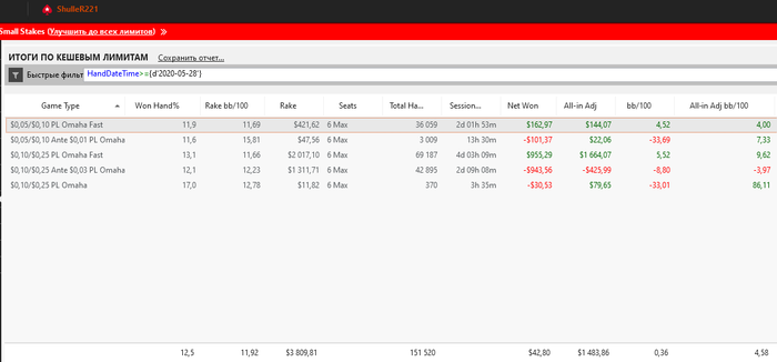 Дистанция никому ничего не должна Отыграл за месяц с хвостиком 151к. рук , при этом первую половину еще куда не шло, ну а вторая вообще не порадовала. Итог 3,8к рейка, +1,4к по EV(50 би+-) С бонусом и еще хоть каким-то РБ получилось около 600$ профита. Смотрю у многих такая картина..... Кста, вывод денег впервые произошел мгновенно, вместо 2-3 дней до зачисления на карту прошло 5 минут