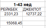 Посчитала еще рейкбек с 1 по 43 неделю