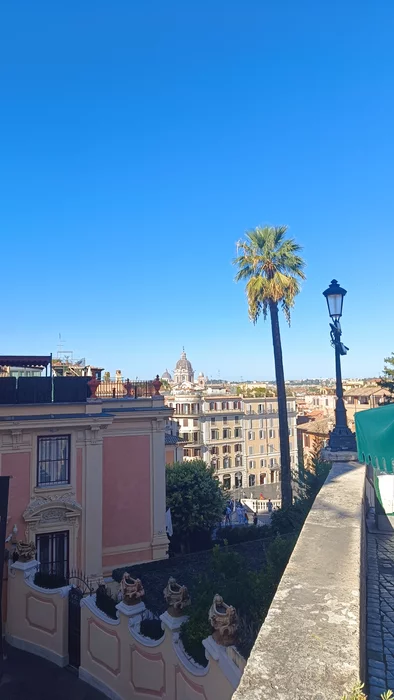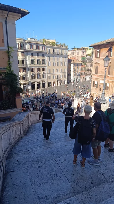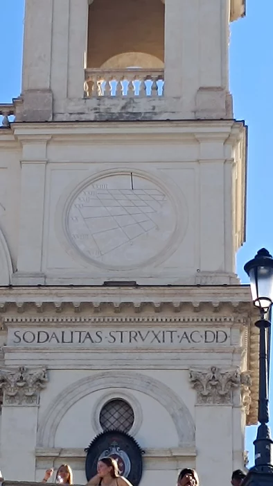 После завтрака в отеле решили пройтись по четырём намеченным точкам. Первой стала Испанская лестница. Ну, лестница как лестница — только огромная, величественная и по римским меркам совсем «молодая» — всего-то 300 лет. Построили её не ради пафоса, а чтобы жителям было удобнее подниматься от площади к церкви Тринита-деи-Монти. У подножия — фонтан Баркачча («Старая лодочка»), сделанный в виде наполовину затонувшего кораблика. Один из интересных моментов — прямо наверху лестницы есть солнечные часы: вбит штырь и расчерчен круг, и по нему можно было определять время по тени. Мы, правда, попали в тот момент, когда они были в тени, так что в действии не увидели.