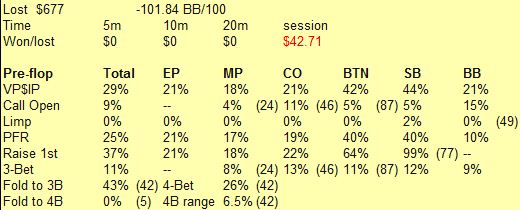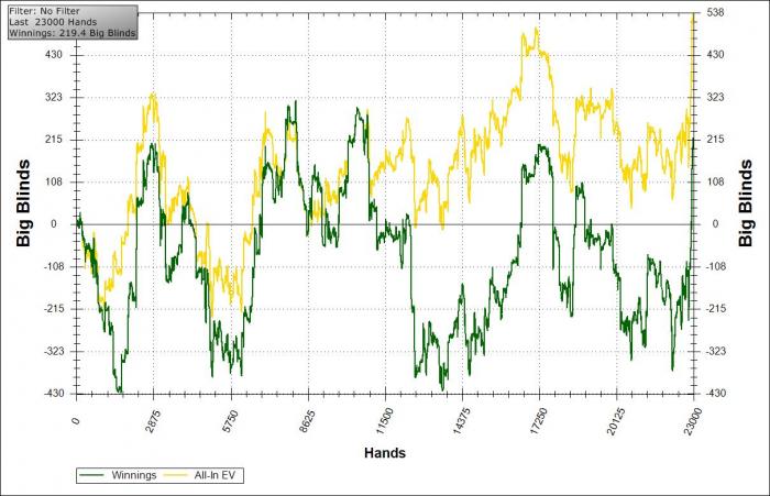 После переезда на новое место жительства мой cdma-модем стал работать в каком-то непонятном для меня режиме - утром и днем без проблем, а вот ночью он иногда просто отказывается выдавать маломальскую скорость, хотя до этого работал два месяца как часы. Хотя если следовать логике, то ночью канал должен быть свободнее гораздо. Ну и как результат - постоянные зависания игры. Тут еще порадовал и клиент айпокера, который как будто сговорился с модемом, потому что после реконнекта играть просто невозможно. Мало того, что меня сажают хаотично за любое место за столом, так и блоки статистики ХАДа тоже появляются в абсолютно рандомных местах. Еще отключается функия авторебая. И почему-то вместо двенадцати играемых столов меня возвращают всегда только на три. Хз почему, видимо так надо. Приходится закрывать клиент и запускать по новой. Разумеется теряются все столы с фишами лучших пород и с самыми честными регулярами. Конечно сейчас это не такая большая проблема, потому что я играю без какого-либо селекта, а вот если бы приходилось бамхантить, то хз как бы это выглядело.
