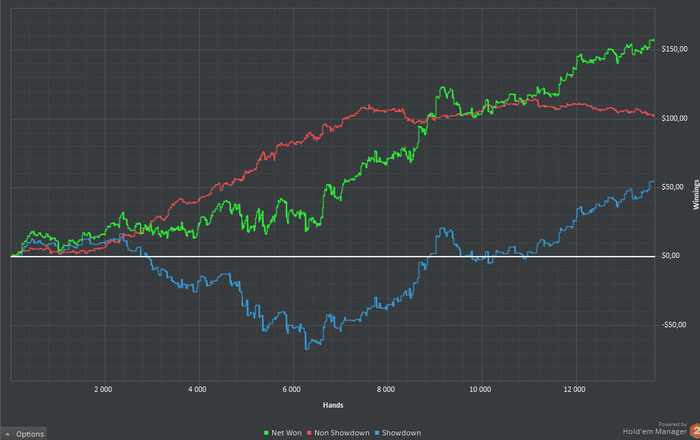 Даже не смотря на то, что в прошлую неделю я отфигачил 50 тыс. рук в жалкие 1.5 бб/100, экспериментируя со своим новым стилем, 270$ ушли на карту в воскресенье, а на БР 295$.