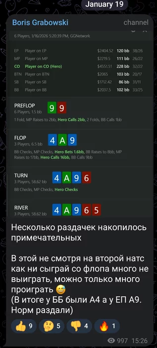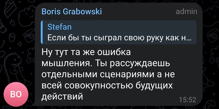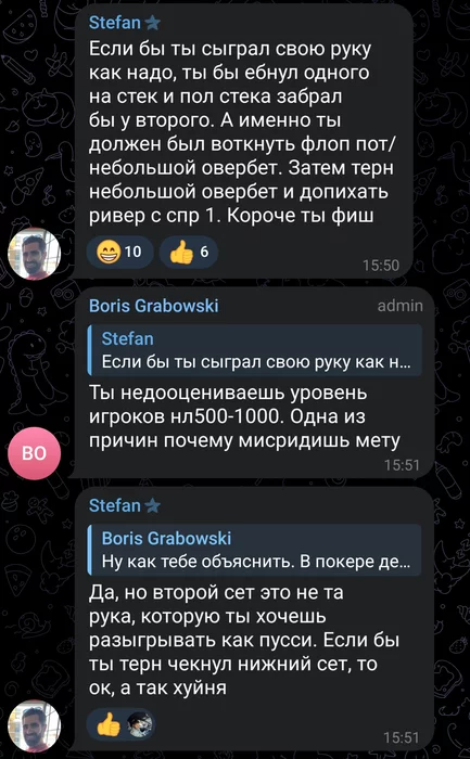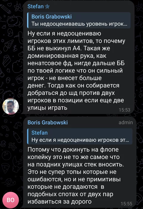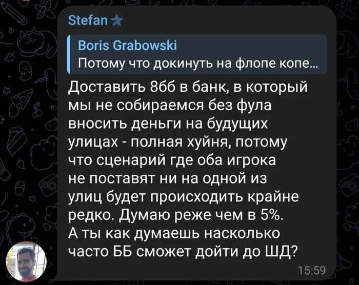 PovArjuga @ 29.01.26Ожидаю что Стефан порвёт поляну в 5 карт: если он умел в техас находить эксплойты против топ-регов, то 5-холдем - это соревнование кто лучше умеет использовать логические модели. Я видел, как Стефан строит такие модели в куда как более сложной среде 2-холдема. Важно:4-холдем недостаточно логическая игра, а в 6-холдем (не играл) кажется рулит тривиальная логика