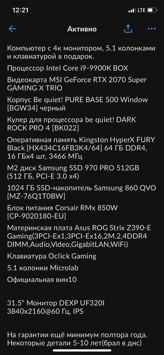 Продаю такой конфиг(перехожу на ноут легион новый). Подскажите плз примерную стоимость? А то за 145 всего один звонок был за неделю. Сильно загнул я? Спасибо