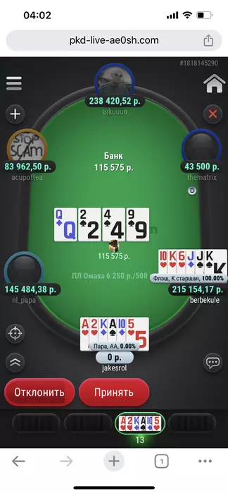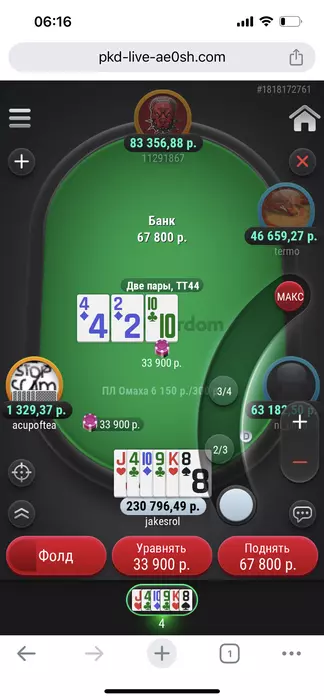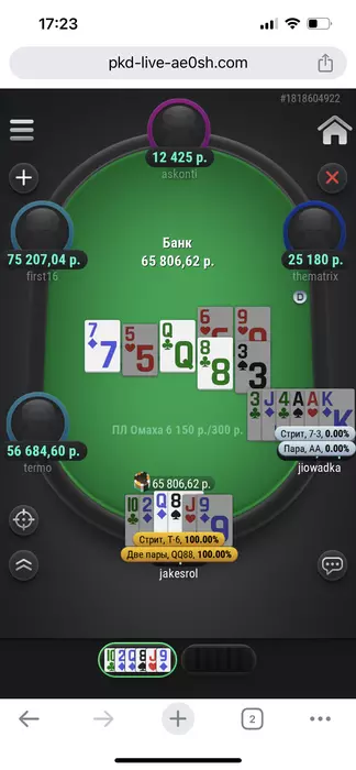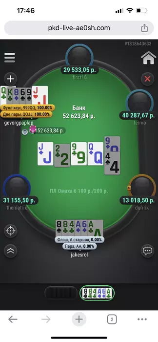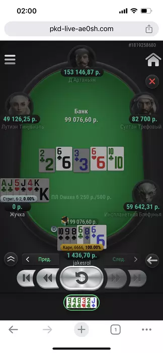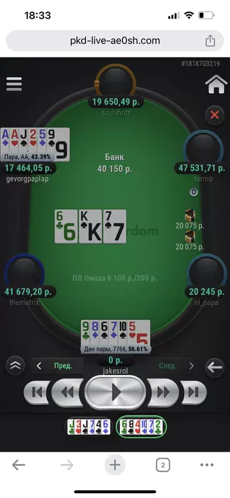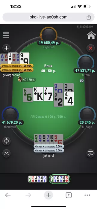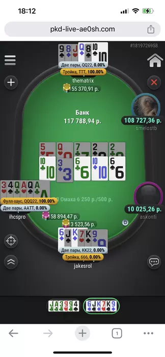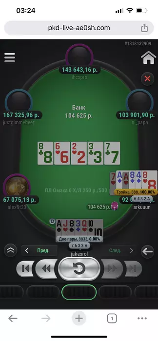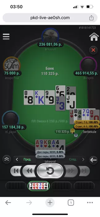 Ебанутый день сегодня,3 сессии было,в первой улетел на минус 100к,во второй отмазался и ушел на плюс 150,и вот ночная катал пока мобила не сядет уже в кровати.Слил весь профит и замазался нахуй,еще какого то хуя полез в 6карт хайлу,там пизды дали тоже,в итоге день минус 120к,повезло немного отмазал на 150-300 от фиша.Вроде и в минус,но такое ощущение что мог вьебаться на тыс 400 с таким раном.Если будет интересно покидаю пару интересных раздач