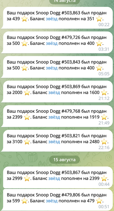 Потом подумал, что надо покупать напрямую у телеги, как это делал AAlexPlayer. Но купить ручками почти нереально - подарки раскупают просто за доли секунды. Покумекав, нашел автоботов в ТГ. В одного из них закинул звезд и нихера он не сработал)) Весь смысл в том, что такой бот работает на одном сервере и пытается обработать очередь из нескольких тысяч человек. С учетом то, что ботов стало больше, как и людей, такие "общественные" решения стали неэффективны.