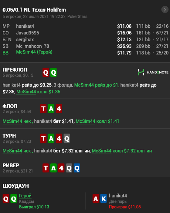 Если оп много 4бетит можно QQ и пушить и колить, но если это тайтовый челик, то лучше фолдить. С учетом что он показал АКо то норм кол. Но против таких я бы колил лучше мастевой бродвей, а QQ в пуш уводил. ПРи игре без стат QQ начиная с СО изи на стек надо ехать))))
