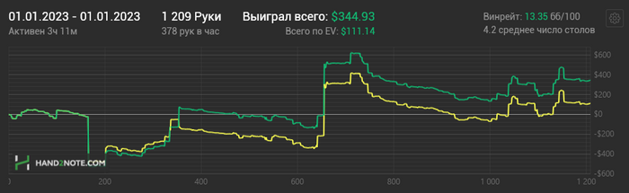 На нл500 оппы уже крутые с одной стороны, а с другой всё равно почти все играют дефолт страту с минимальными отклонениями. Я всё жду, когда пойдут звери-блаферы, которые за каждый спот убить готовы, но пока все топ реги, которых я вижу, играют довольно сдержанно. Что называется "без хуйни" (это очень круто в покере, на самом деле, не делать хуйни за столами)