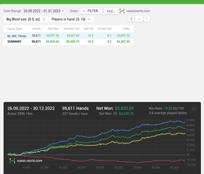 Общий вр по лимитам что-то типа ~5евбб100 (нл25-50 6-8бб100, нл100 в слабый плюс, нл200-нл500 10бб100+)