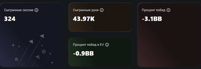 pv_DeNiS_pv, плюсую, не буду долго расписывать, просто дождусь историю рук что бы посмотреть как можно было за 3 игровых сессии прогуляться на -20 баинов. И там ноль шансов, что в одной крутке, что в двух. В двух ты сверху одну проиграл всегда, в одной проиграл монету, две из двух проиграл фд и только меняются варианты насилия. Доехать ноль шансов, напротив всегда доедут и найдут че показать к риверу, это всем знакомо, но на 3ий день я прям вслух задумался таскать гипсокартон на 5этаж за 700р/час.