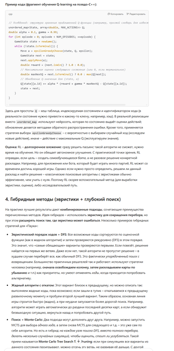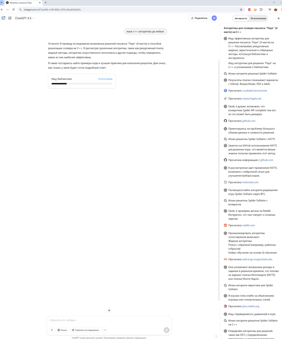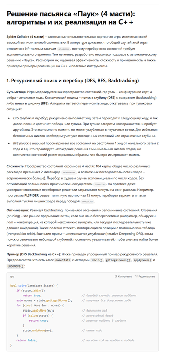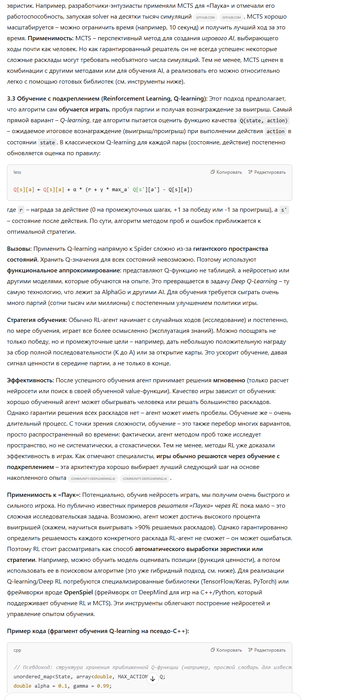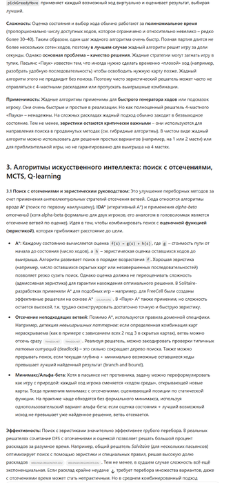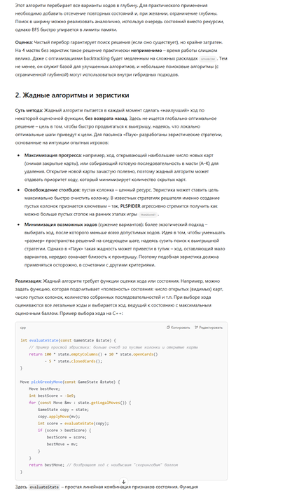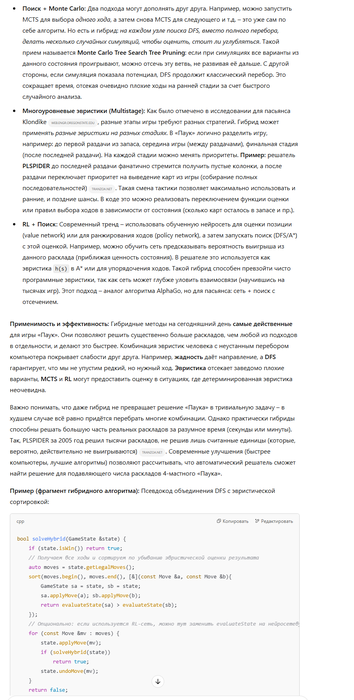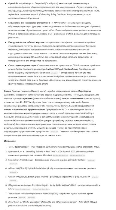 . Современные улучшения (быстрее компьютеры, лучшие алгоритмы) позволяют рассчитывать, что автоматический решатель сможет найти решение для подавляющего числа раскладов 4-мастного «Паука».