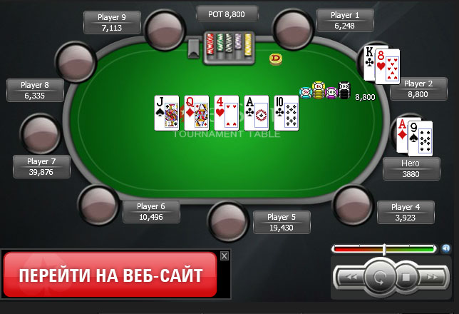 (2 players)Hero bets t3796 all in, Sturzshane calls t3796