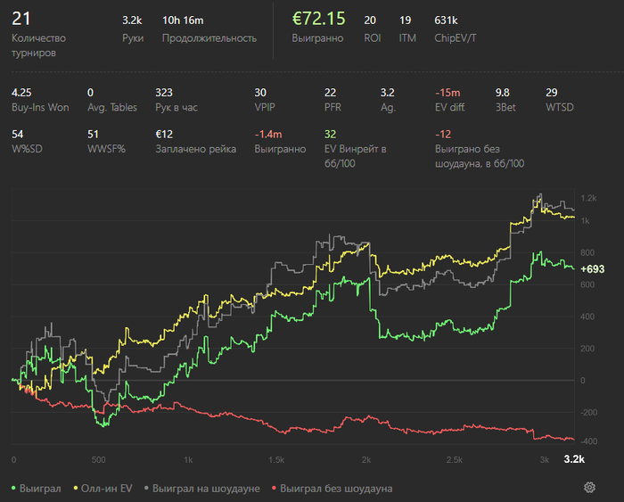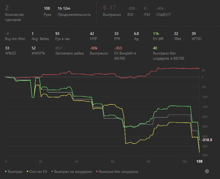 Оффлайн мтт это вообще отдельный мир с уникальными диапазонами и динамикой, оффреги гораздо слабее технически в моментах что я описал выше, но могут получить перевес за счет теллсов и большей дисциплины. Вообще, вопрос достойного заработка в офф мтт спорный, в плохих структурах с таким большим рейком и расходами на транспорт и проживание и огромной диспой.