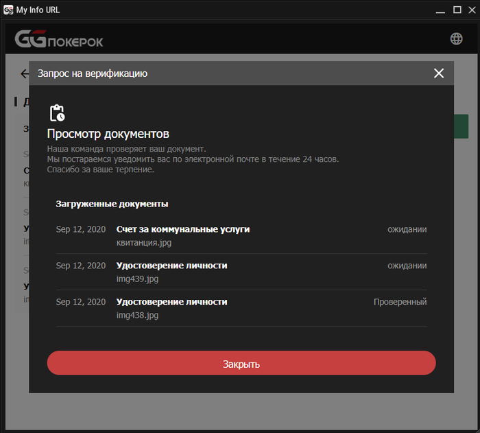 Обработав вашу заявку, ПокерОК передаст информацию платежному провайдеру. В большинстве случаев поиск платежа займет не более нескольких дней, но в редких случаях может затянуться до нескольких недель. Пожалуйста, не отправляйте повторные запросы в саппорт чаще, чем раз в несколько дней, это не ускорит процесс. Спасибо!
