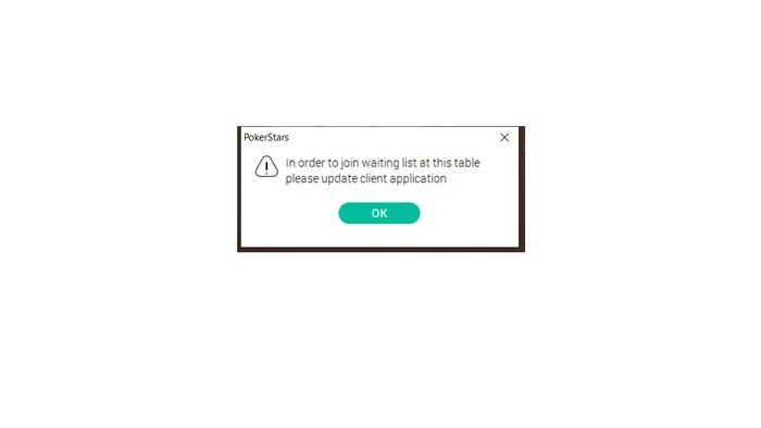 Тоже, во время игры и попытке сесть за стол выходит сообщение "пожалуйста перезапустите ваш клиент" и выкидывает со всех столов.