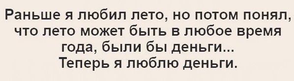 Не первый раз такое слышу, но это справедливо, когда тебе все равно, где будет "лето". А мне нужно здесь, где у меня мой дом, двор, природа, плюс не буду ж я условно, ради продления лета перевозить с собой, собаку двух котов и кошку каждый раз, это слишком тяжело и лишний стресс для всех. А просто поехать куда-то на пару недель или месяц это не совсем тоже, что "лето в любое время года", т.к. в том месте, не будет тех привычных вещей которые мне нравятся здесь и сейчас.