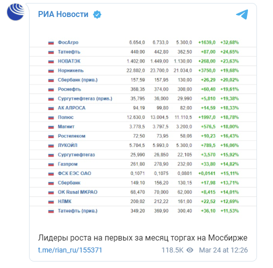 Zykov @ 24.03.22Супер сладких цен сегодня нет (если сравнивать с тем, что было), особо ничего не покупал и не планирую, так прикупил там по мелочи. Если бы у меня не было портфеля, то сейчас, безусловно, активно набирал. Ценники очень хорошие на долгосрочную перспективу.