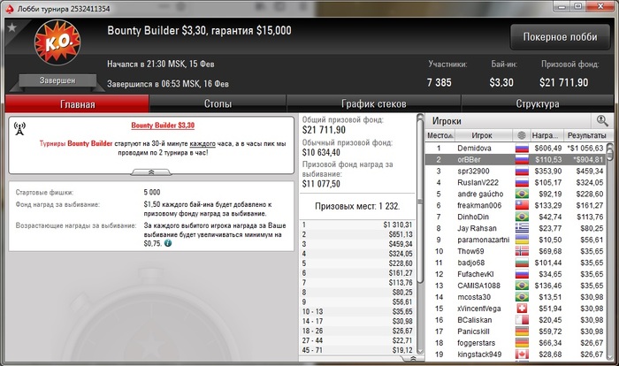 orBB, до сих пор помню тот турнир, это мой первый такой занос был, запах 1000$+ за топ1-2. Так же запись финалки этого турнира "завирусилась" в моем первом ютуб канале и дало мне большое количество подписчиков за 2 недели + топ просмотры были.