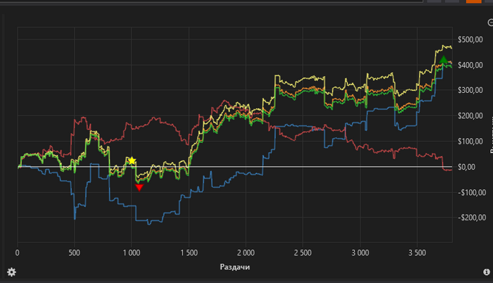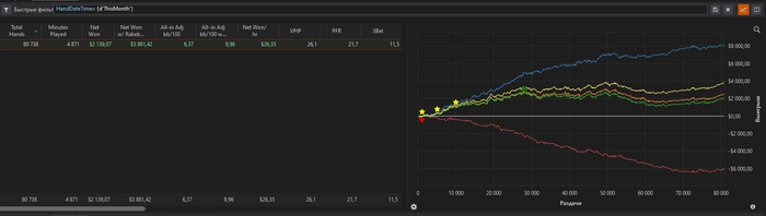 купил наконец подписку на визард. Хочется красную подтянуть. Чувствую, что на сотке недотягиваю по агрессии. Позалипал в тренере, поразбирал проблемные для меня споты, переработал префлоп в сторону тайтовости. Результаты не заставили себя ждать