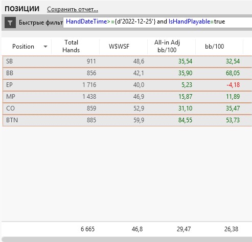 Я думаю, что результаты у меня были бы хуже, чем если бы я не пробивал опонентов с начала турнира. Ну ок, наиграл бы я на 1-2к турниров больше, если бы не пробивал, но и РОИ при этом упал бы на 10-15% = одно на одное выйдет (а высокий рои и ев снижает диспу). Да и привык уже я пробивать