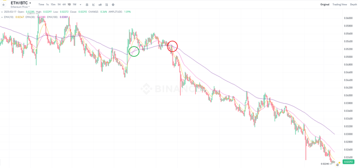 Для начала посмотрим на дневной график ETH / BTC (здесь график с начала 2024 года):