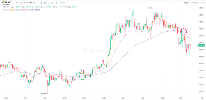 В моей парадигме это означает, что начался медвежий рынок. Т.е. это уже не просто коррекция, я начало нисходящего движения. Я бы мог тогда открыть шорт по цене около 90К (а затем зафиксировать профит по 80К), но я консервативно не стал этого делать. Слищком тайтово играю и недобираю.