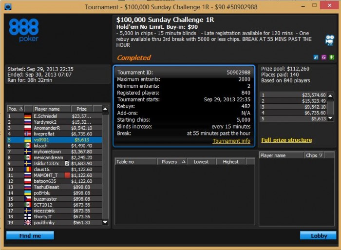 Тем временем, на 888.com всё, как обычно (хотя составы в этих турнирах с каждым днём сложнее):