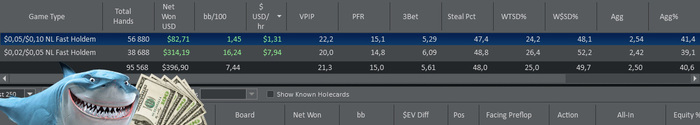 На конец месяца отыграно 95 тыс. рук на лимитах нл5 и нл10 на ЗУМе в 4 стола. Я поменял свой стиль и с 18/14/5, как играл раньше на 22/17/6, т.е. более лузовый. Получил Голда. Ошибкой стало, что я начал экспериментировать с новым лузовым стилем на лимите нл10, а не ниже. Из-за чего сыграл более 40 тыс. рук в ноль, пока не освоился.