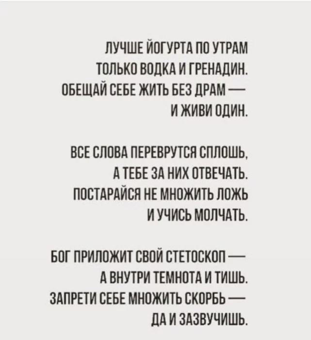 Всё таки 17 лет вместе. Починили кошку в ветеринарке приехали домой. Взяли арбуз и коньяка. Сидим распиваем молча без тостов. Я говорю : вообще меня не уважаешь или только временами?
