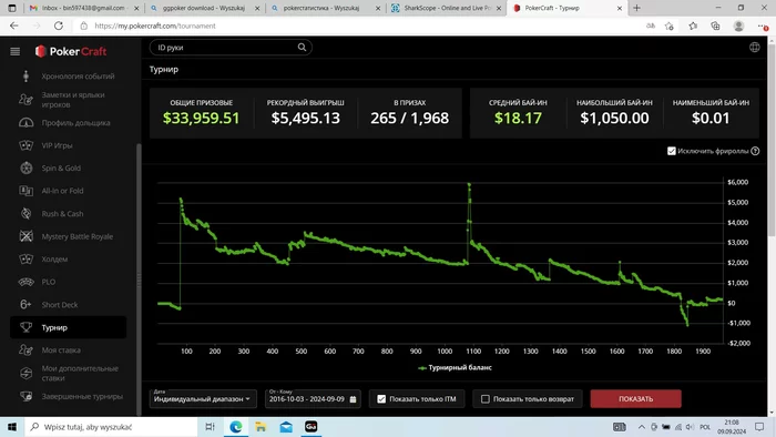 3. Дистанция на GG за последние 6 мес. - 2599 турниров.